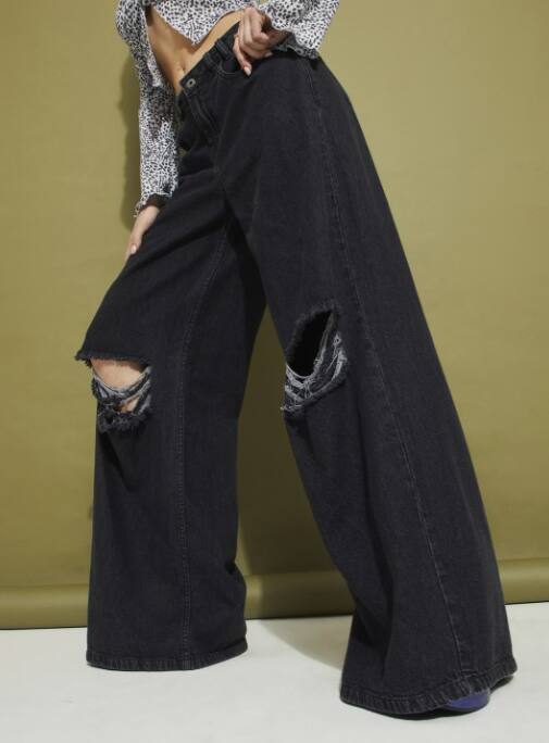 Give some punk rock flavor to your day-to-day dressing with these Glitchez Ripped Pallazzo Jeans. The loose-fit and grungy style fits street style enthusiasts the best. The utilization of soft denim keeps them light, and statement flair arrives in one stroke.